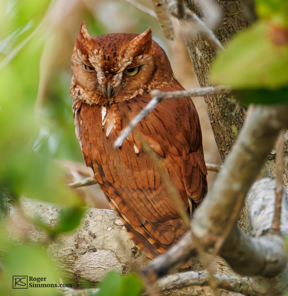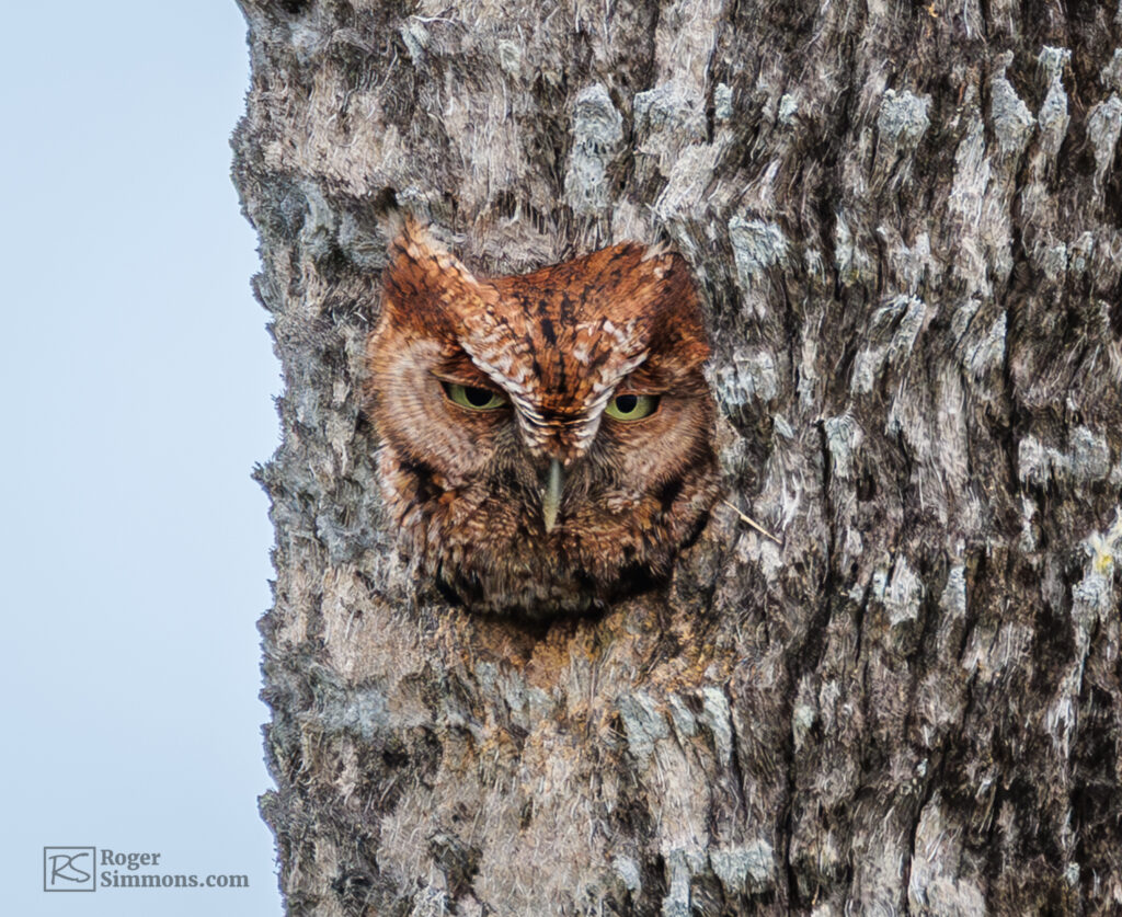 Most Eastern Screech Owls are gray, but about one-third are reddish-brown in color. Surprisingly I saw a couple of the red morph versions of the owls but only one from the more dominate gray-color family. Both types were seen nesting in hollowed-out parts of dead palm trees, but I did get to see one reddish version sitting outside a palm around sunset.