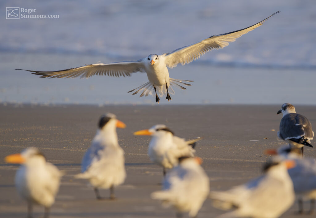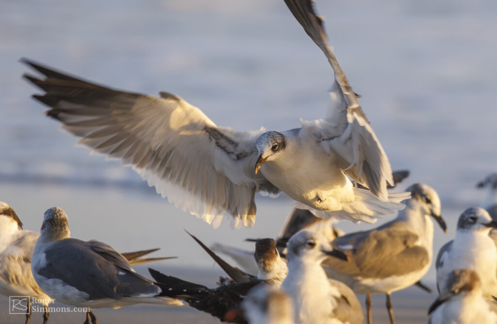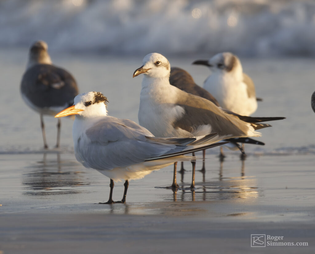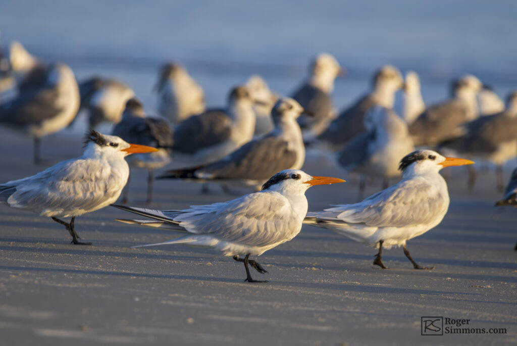 On a recent sunrise visit, I came across a large group of terns, Royal and Forester’s, mixing in with a group of adult and juvenile Ring-billed Gulls. And Black Skimmers, of course.