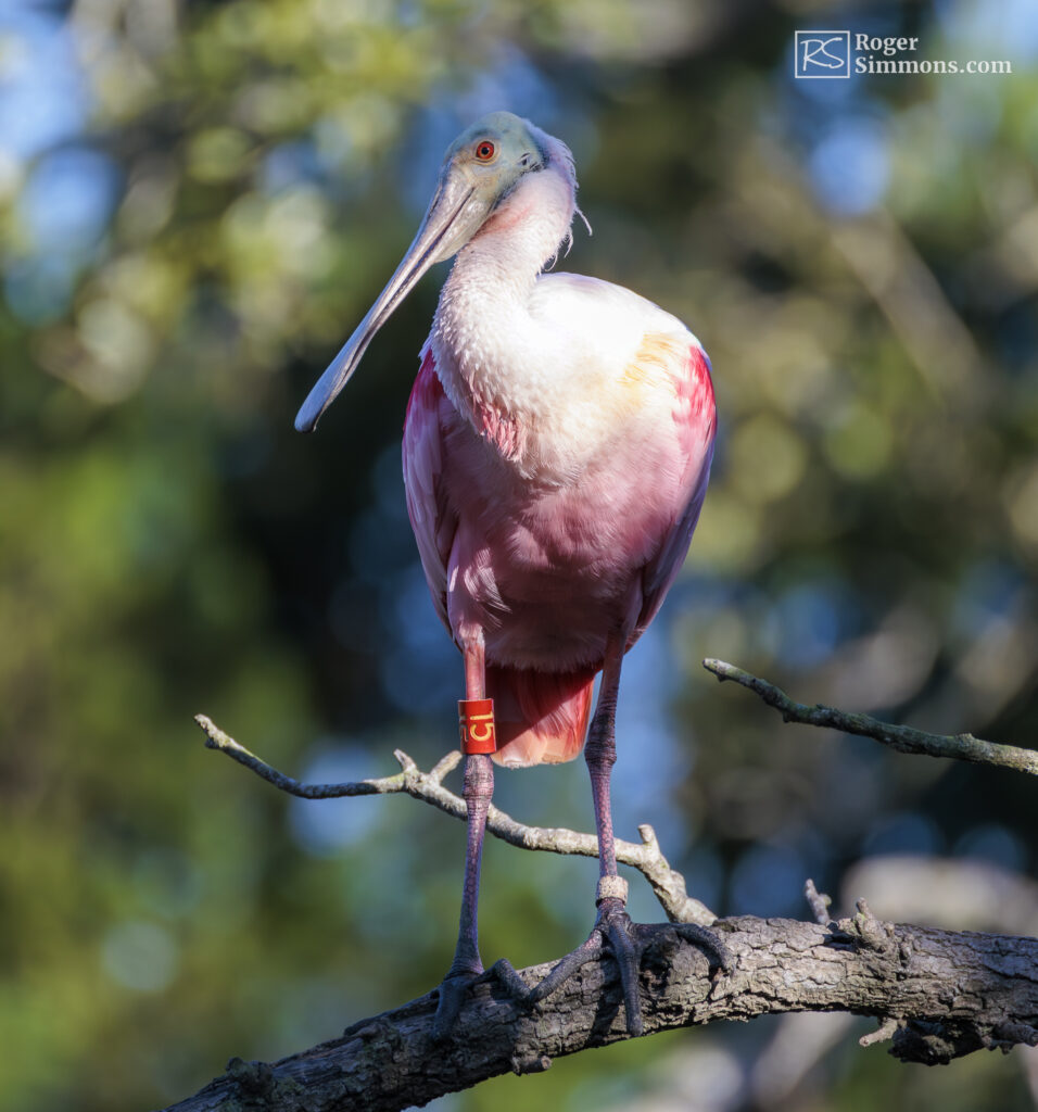 Banded adult Roseate Spoonbill, St. Augustine Alligator Farm, January 2026.