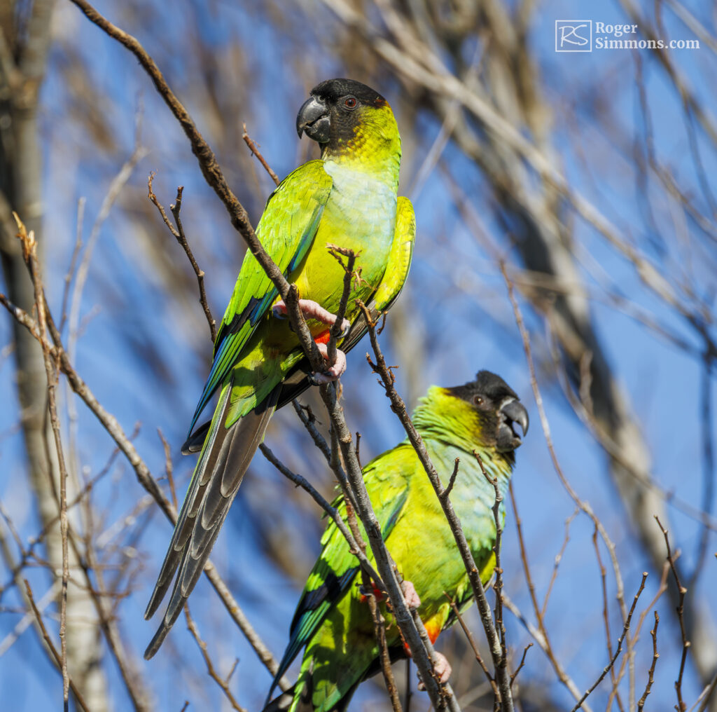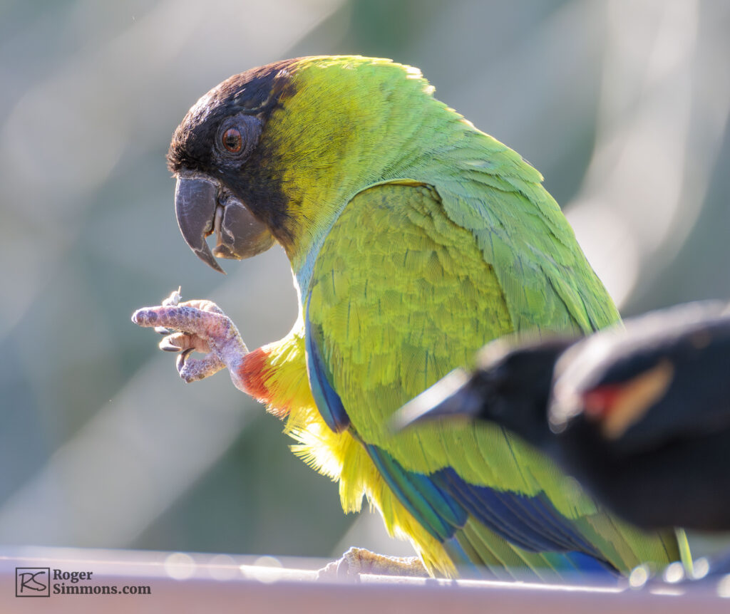 “Recognized by its black head (and formerly called Black-hooded Parakeet), this species was originally found in the central interior of South America, from southern Brazil to northern Argentina,” Audubon.org notes. “It has been popular in the cage bird trade, and Nanday Parakeets escaped from captivity have established large feral populations around Los Angeles, in the Tampa Bay area of Florida, and along Florida’s southeastern coast.”