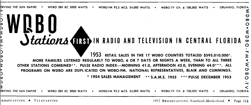 Afterall, WDBO-TV Channel 6 was just the 12th television station in the Sunshine State (and just the sixth VHF station). And it was only the second station in the middle of the state, behind St. Petersburg’s WSUN-Channel 38.